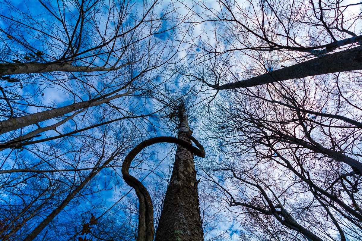 Part of the Beaver Dam Park project includes 8mm shots "Up a tree". The project now has lost most of the fall color but some new dimensions are left to explore. The 8mm lens makes it fun!